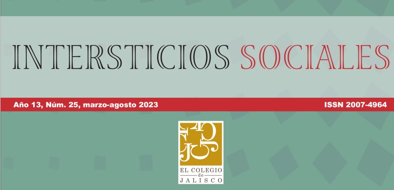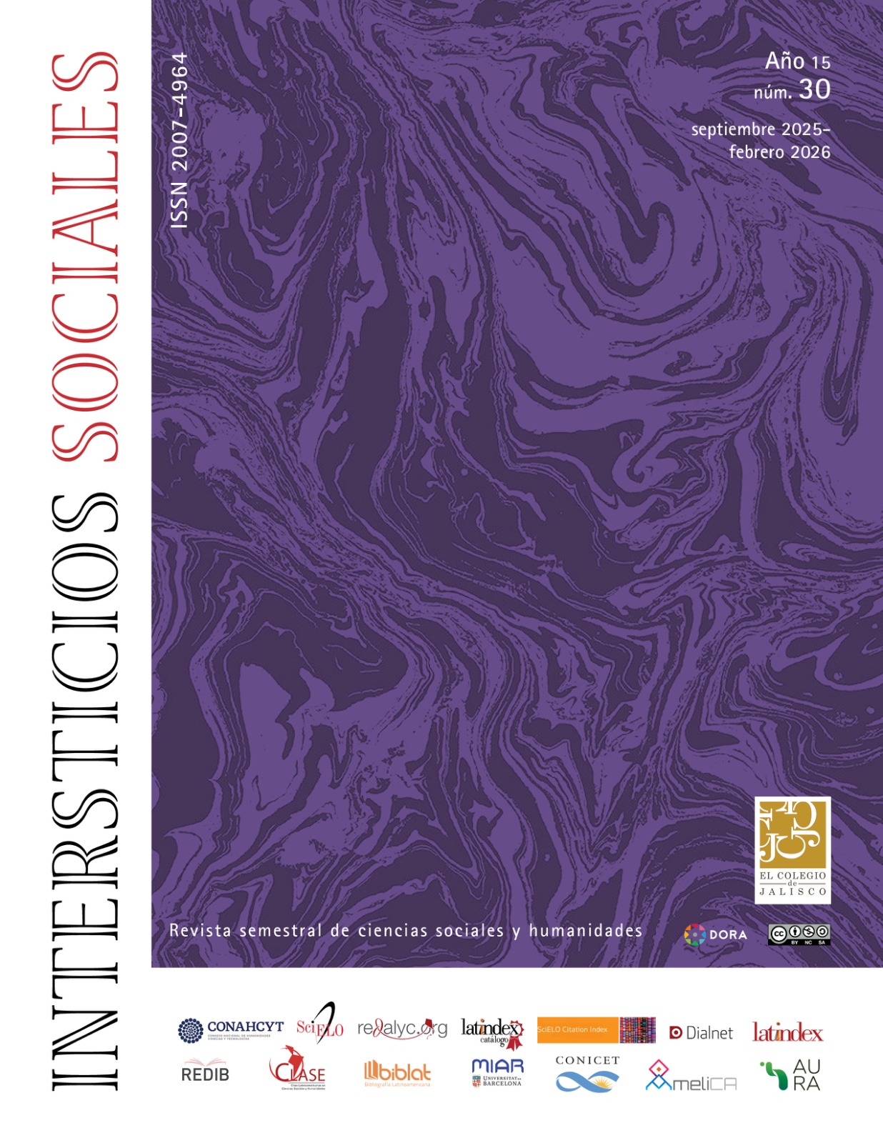 Intersticios Sociales, año 15, número 29, marzo-agosto de 2025, revista semestral. Es una publicación editada por El Colegio de Jalisco, A.C. con domicilio en 5 de Mayo núm. 321, Col. Centro, C.P. 45100, Zapopan, Jalisco.  www.coljal.mx Correos electrónicos de contacto: intersticios.sociales@elcolegiodejalisco.edu.mx y contacto.intersticios@elcolegiodejalisco.edu.mx